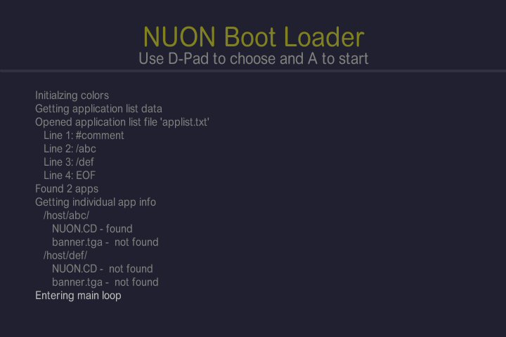 - Toggle through the console with the NUON button. Also added +ShowConsole to default to the console screen.