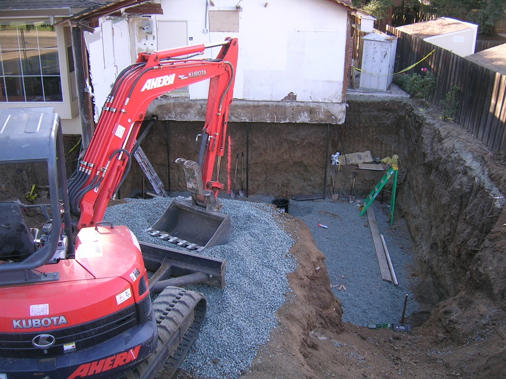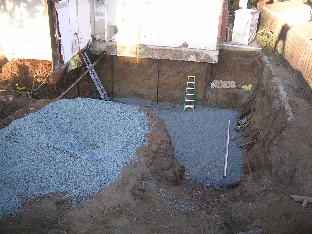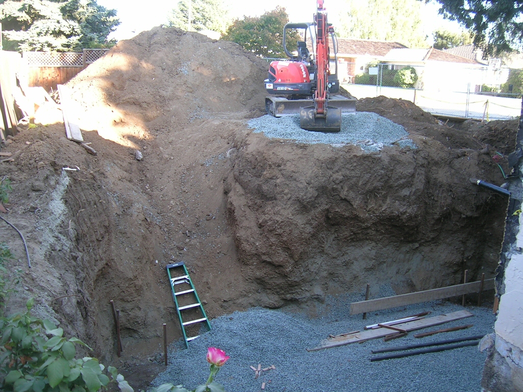 | Wednesday, October 8 - Started filling bottom of hole with gravel as drainage for the basement |